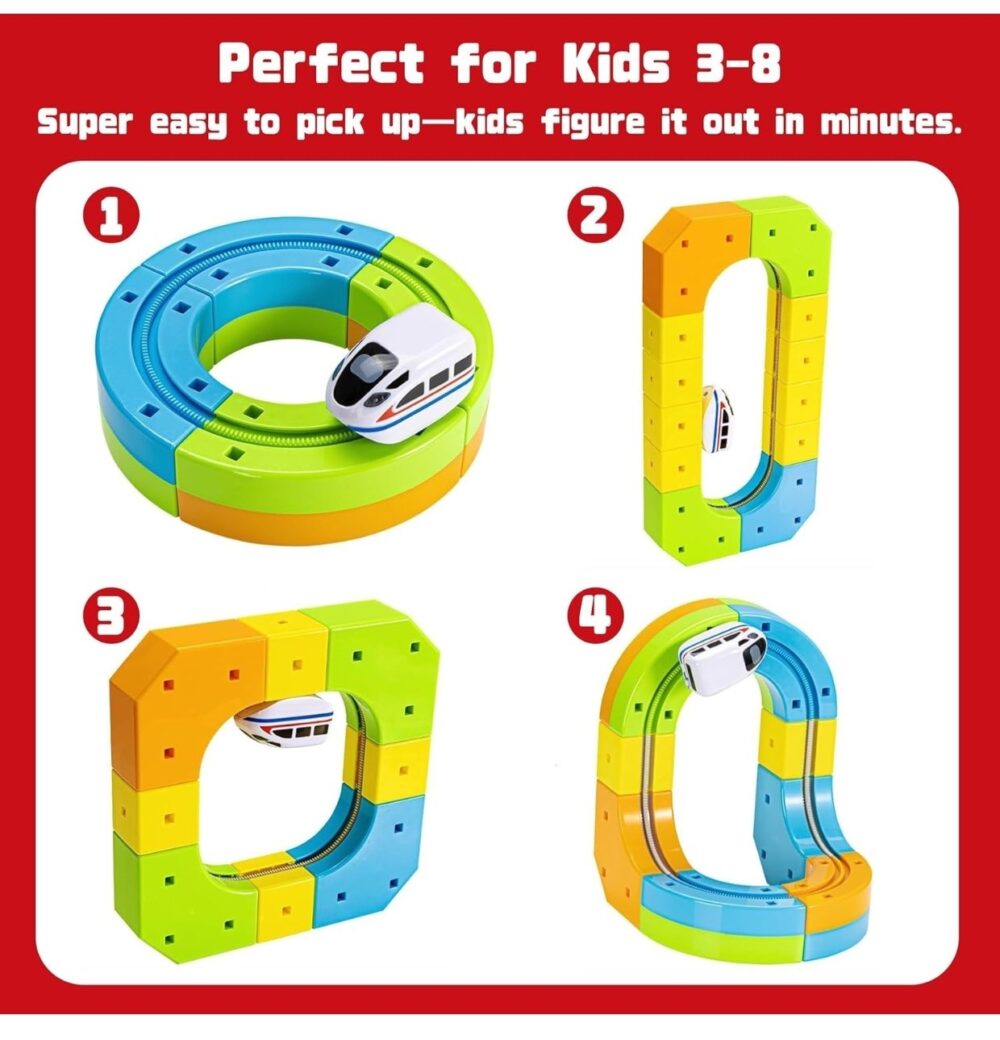 51 Pcs Cube Track – Fun STEM Anti Gravity Race Track & Rail Cube Monorail