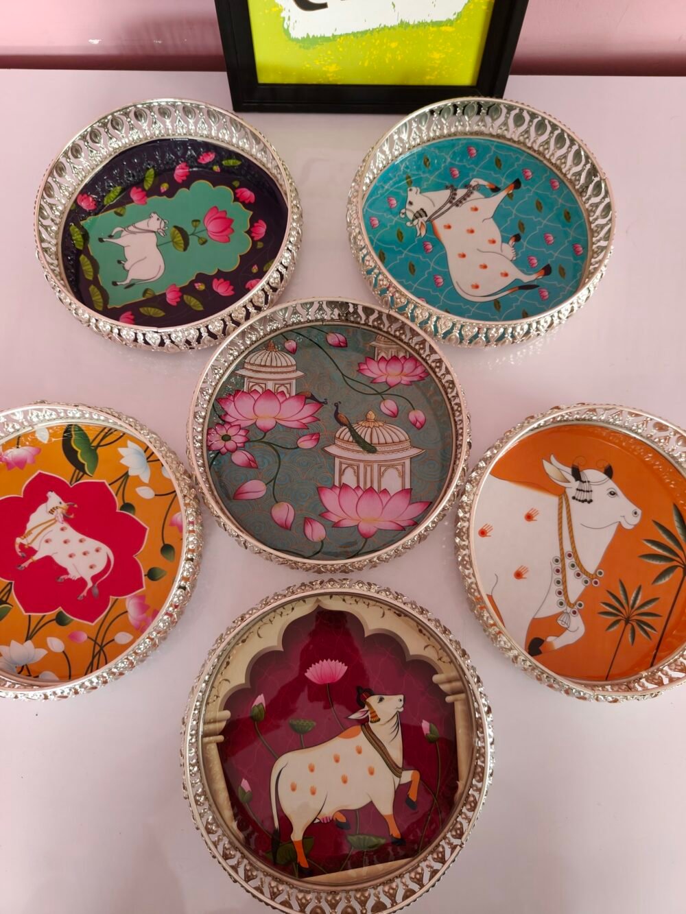 Pichwai German Silver Tray – Handcrafted Decorative Plate