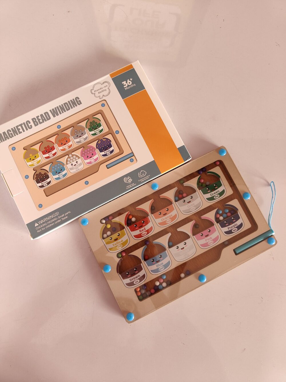 Designed with bright illustrations and tiny beads, children use the magnetic pen to guide beads into the right sections. This engaging activity helps kids: