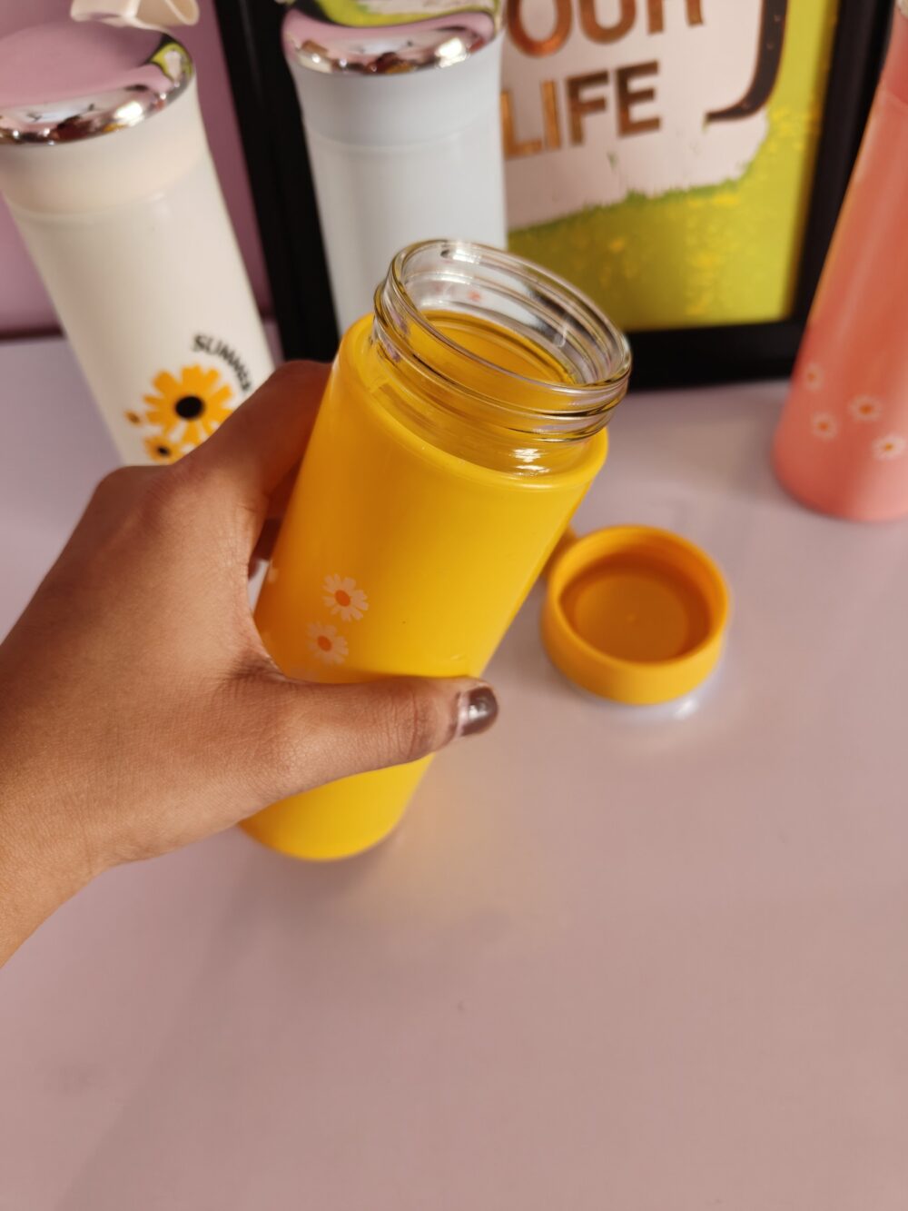 • Innovative Design: This bottle seamlessly combines the convenience of a plastic exterior with the purity of a glass interior, creating a harmonious fusion of materials.Ideal Capacity: With a 400 ml (13.5 oz) capacity, it’s the perfect on-the-go companion for quenching your thirst while staying compact and portable.