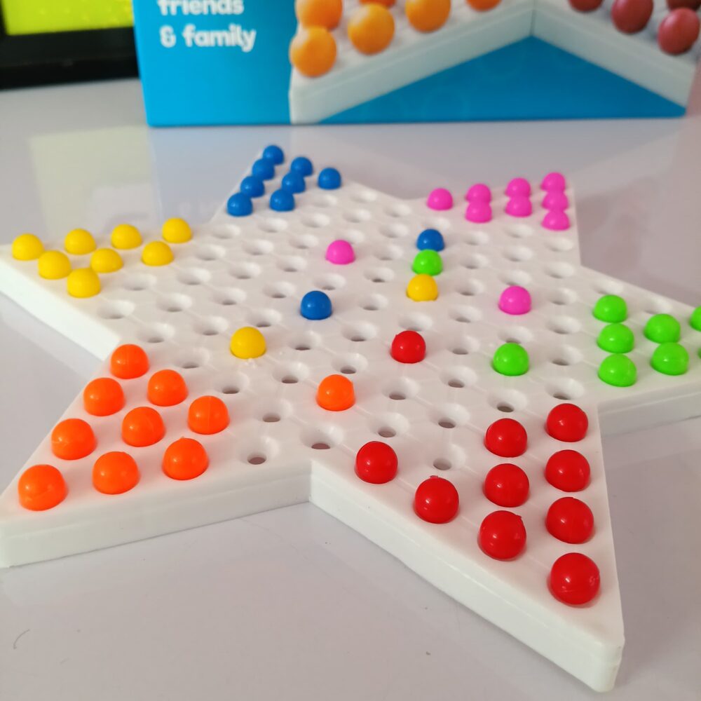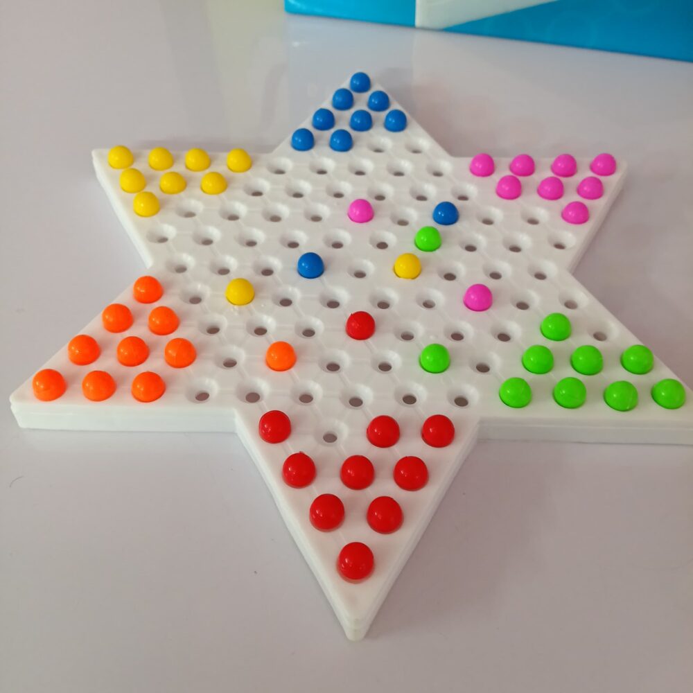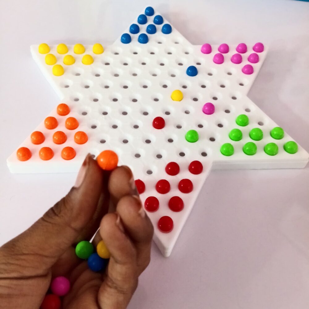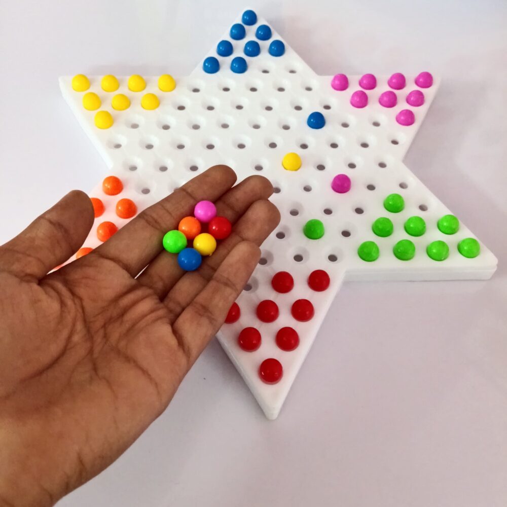 • Star-Shaped Board – Durable, lightweight board with smooth holes for easy movement of pegs.