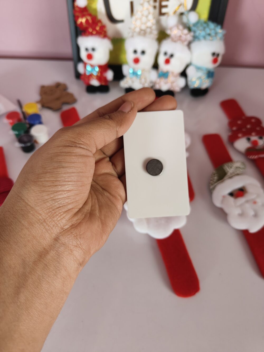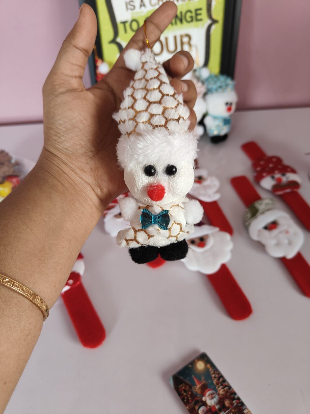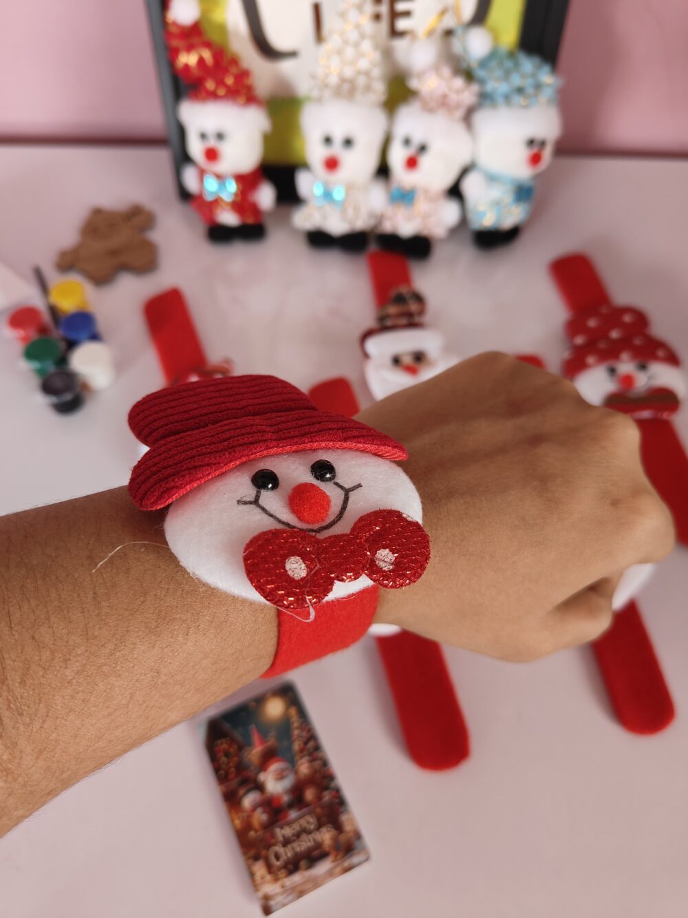 - Includes Santa slap bands, mini figurines, keychain, wooden ornaments & décor pieces