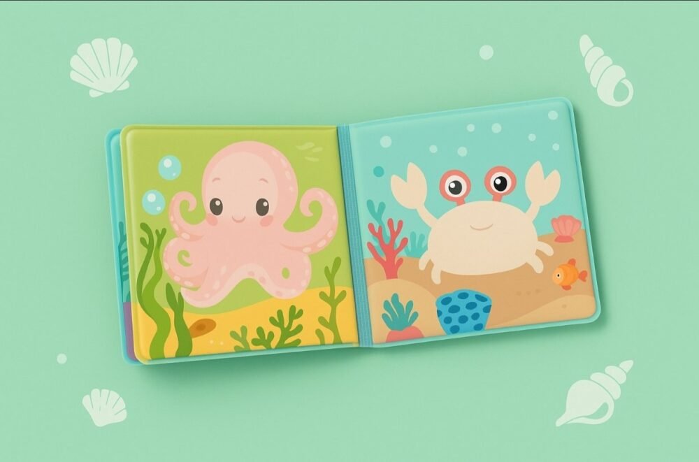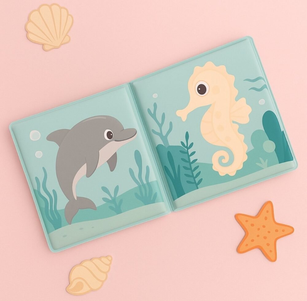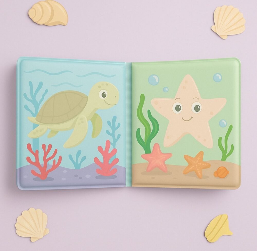 - 100% waterproof, tear-proof & baby-safe materialColour-changing pages when dipped in water