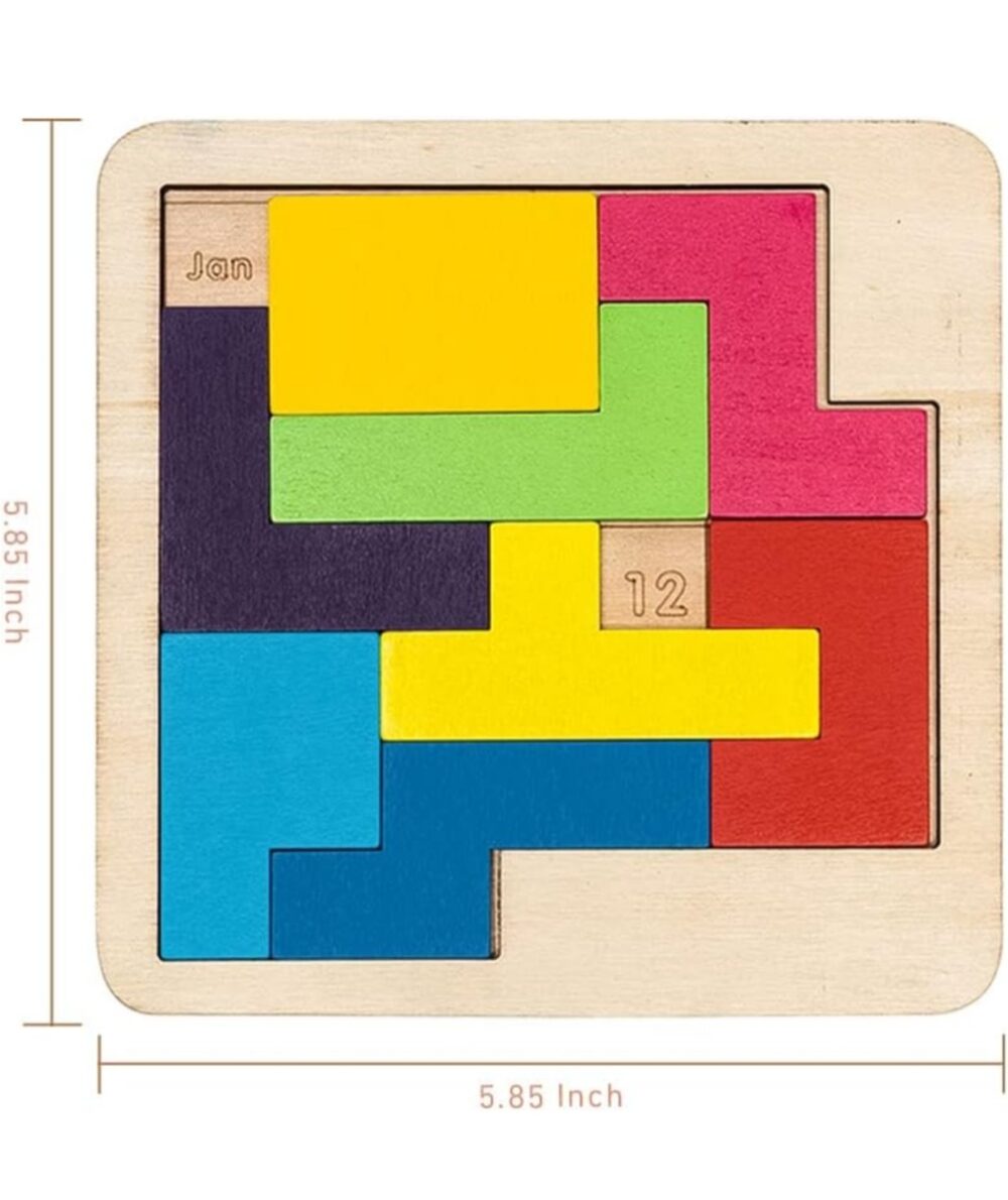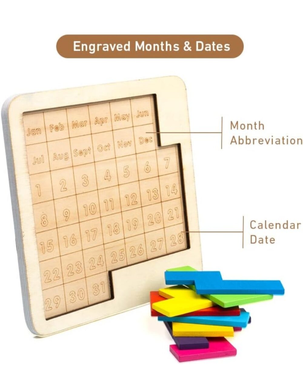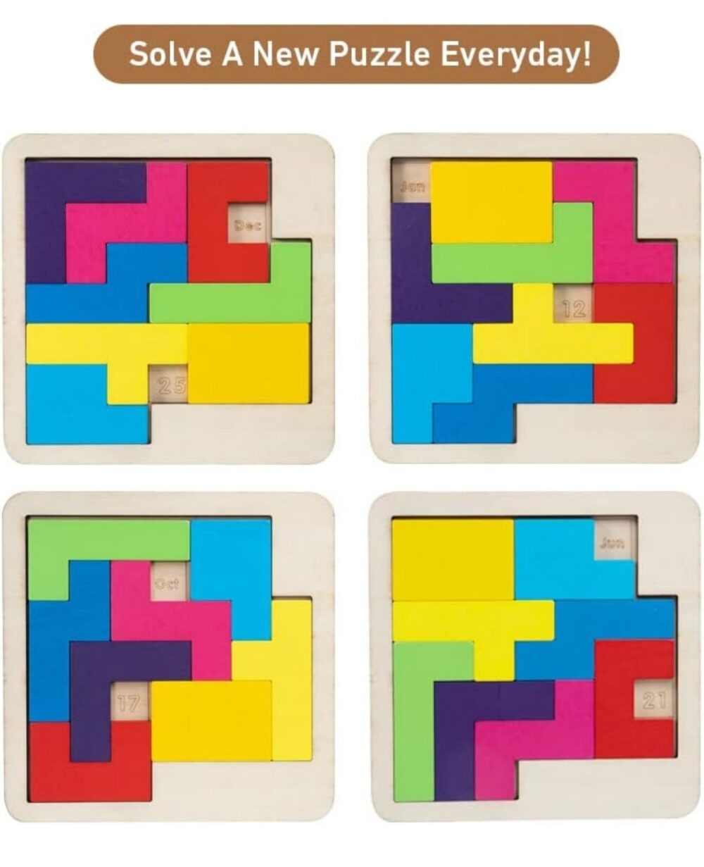 Daily Calendar Puzzle – Wooden Challenging Tetris Tangram Puzzle For Kids & Adults