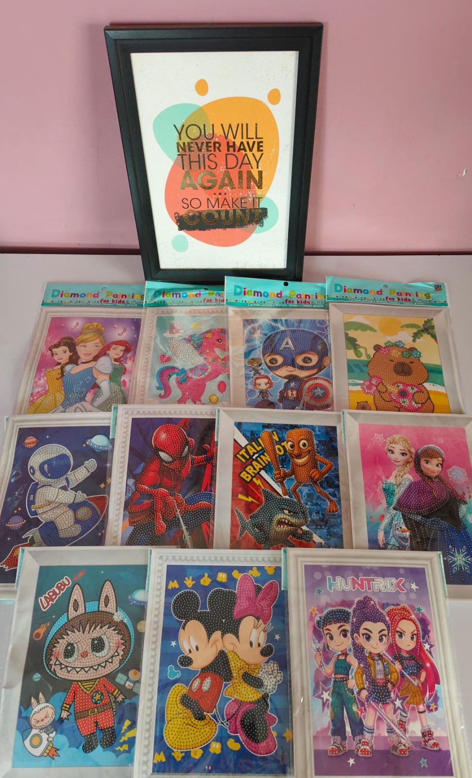 - Unleash your creativity and craft a dazzling masterpiece with this Diamond Painting Kit! Perfect for beginners and experienced crafters alike, this kit lets you place shimmering diamonds onto a pre-printed canvas to create a stunning, partially jeweled picture. The realistic printed frame enhances the artwork, making it ready to display! What’s Included in the Kit?