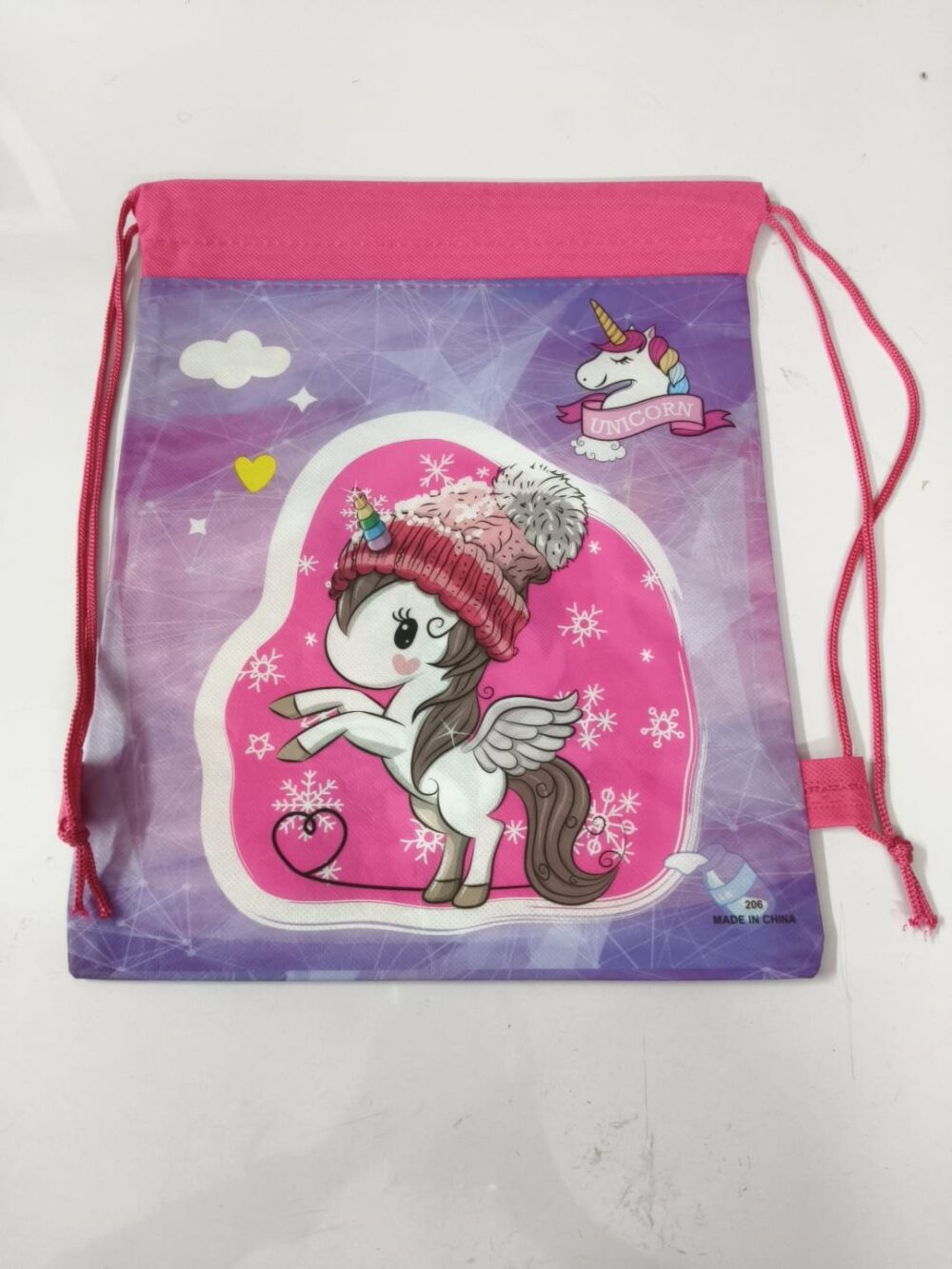 Material: Polypropylene Non- woven Bag. Bag is with one compartment.; Multi purpose sack bag for kids. It can be used as school outing bag, picnic bag or any other purpose.