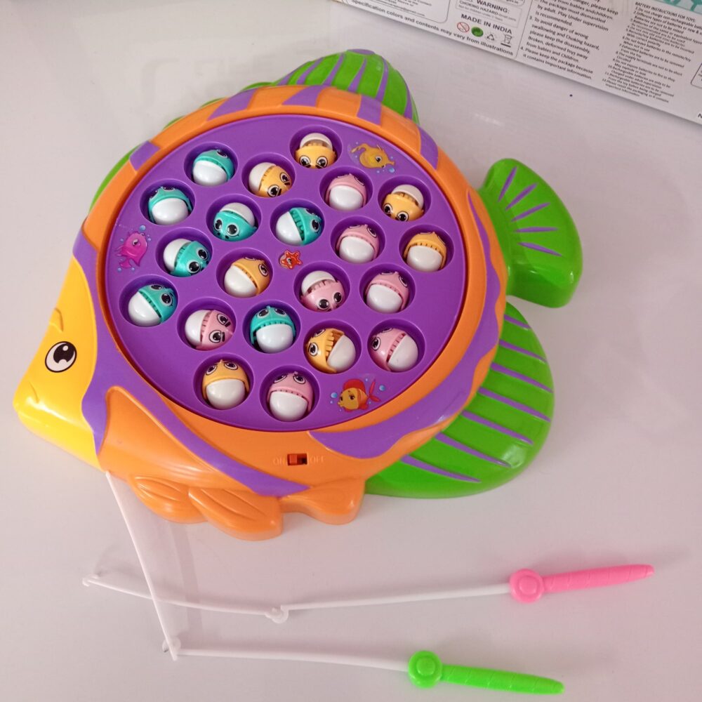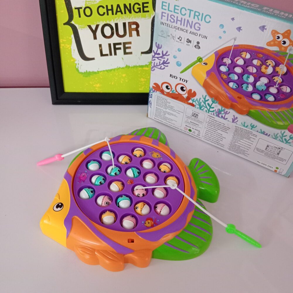 - Interactive Fishing Toy – Rotating fish pond with colorful fish and 2 magnetic fishing rods for multiplayer fun. Develops Motor Skills – Enhances hand-eye coordination, focus, and dexterity as kids try to catch the moving fish.