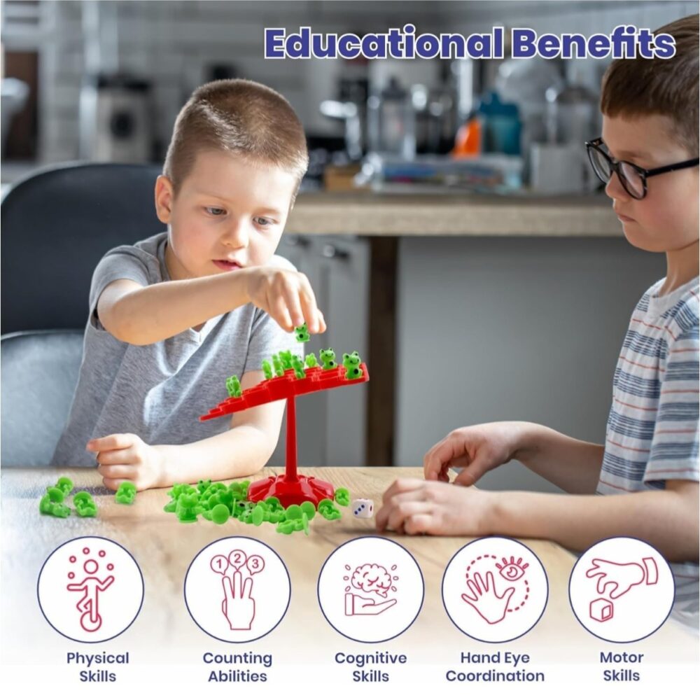 - Fun Balancing Challenge: Stack the frogs without tipping the tree—improves focus, balance, and coordination in a fun way