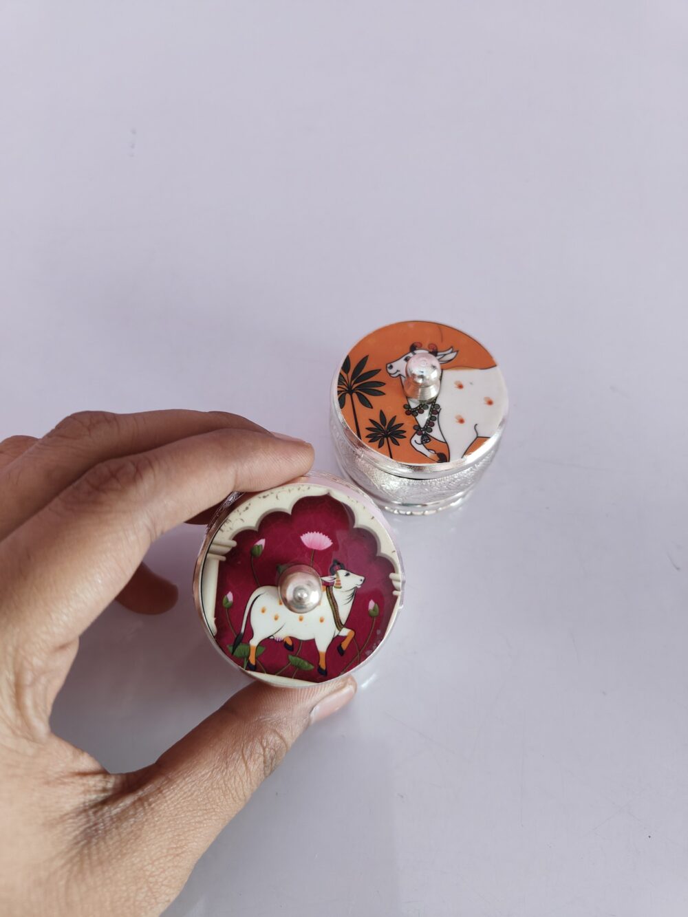 - Beautifully crafted with hand-painted lid (cow & floral motifs)