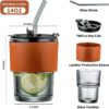 • Material: Glass tumbler with lid and straw is designed with high borosilicate glass, which can withstand high temperature of 27°F. But please do not quench and heat quickly, so as not to burst the glass. The straw also uses high borosilicate and safety lead-free glass. protect your health