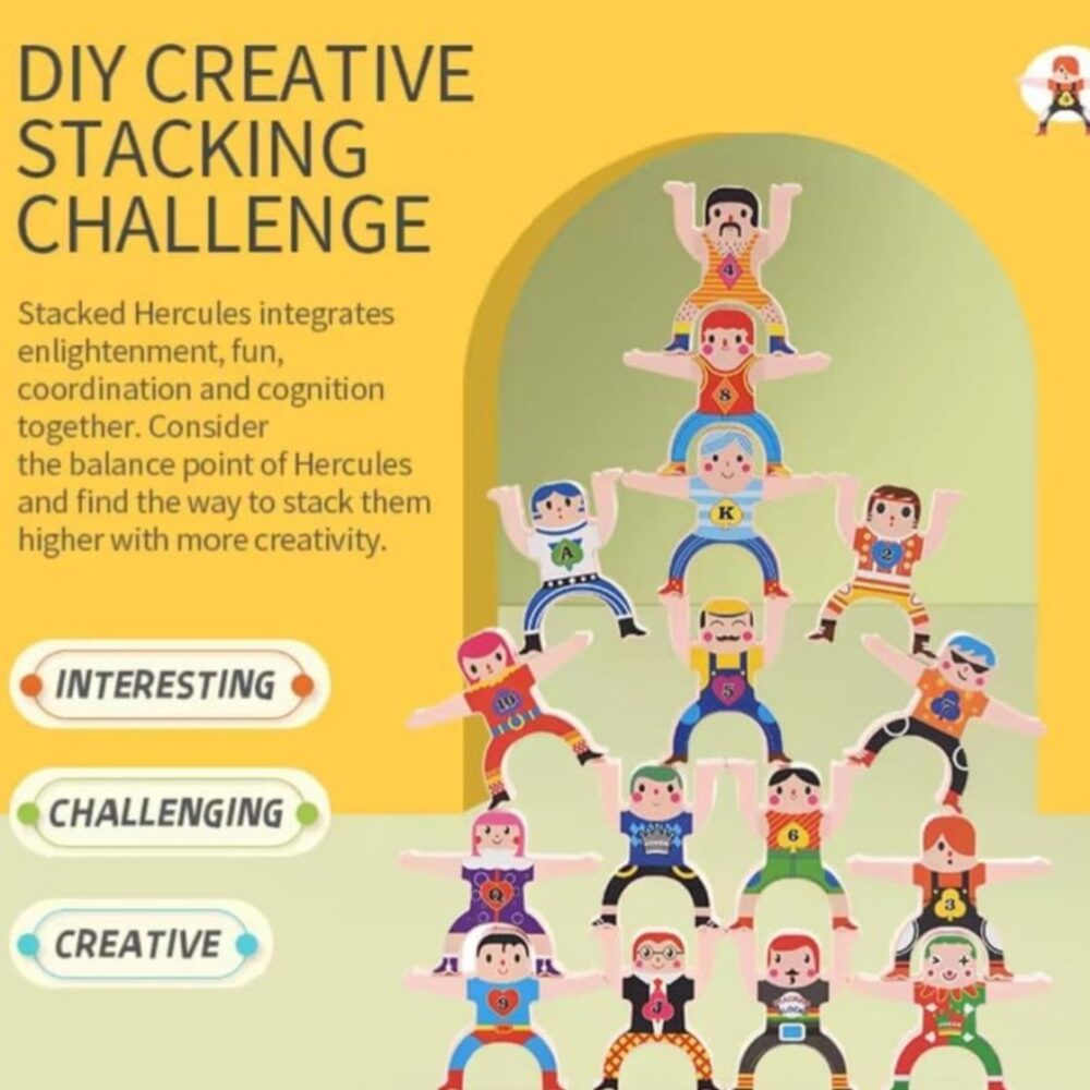 - MORE WAYS TO PLAY- Except stacking , we add the way of play: Place these Hercules in a straight line and push them down! It becomes a domino game, or put these “Hercules” like bowling, then hit them with a small ball or another “Hercules”, see who gets more scores! FAMILY GAMES- It’s a excellent interactive game to enhance the relationship between parents and children, parents can also join in and play with their children, we provide some examples on picture, and we also welcome everyone to show and share your child’s beautiful combinations. Perfect gift for 1-6 years old children, value for money!