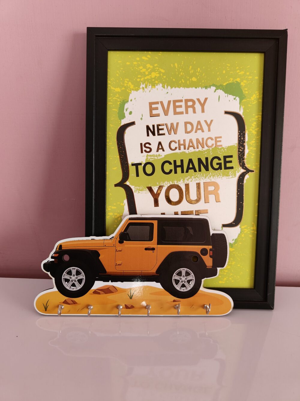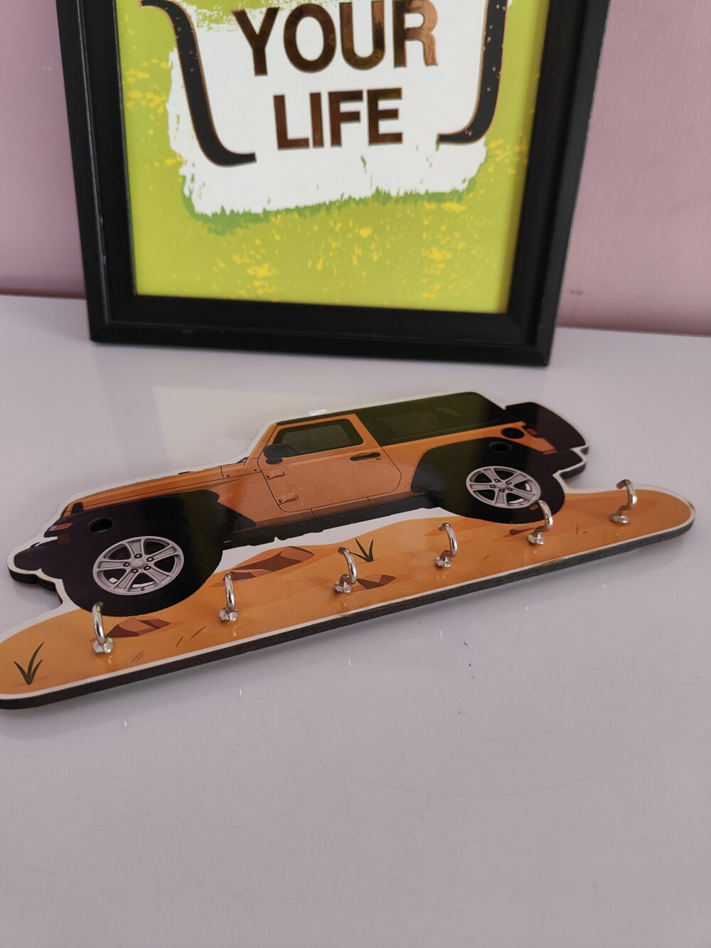 - Adventure-Inspired Design: Fun jeep shape adds a rugged touch to your home decor.Functional & Stylish: Features multiple sturdy hooks to neatly organize your keys.