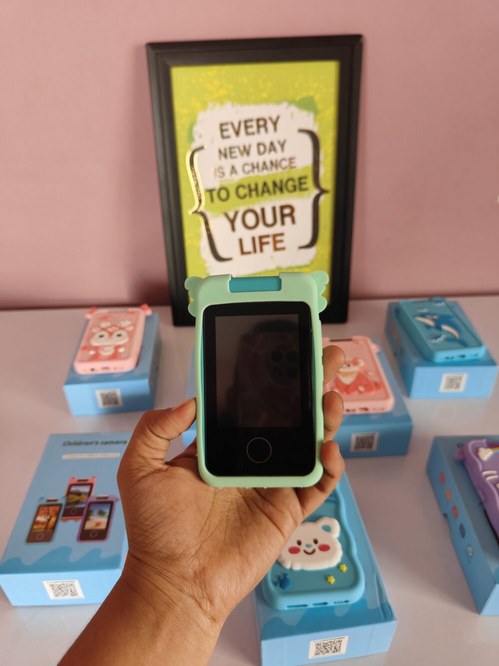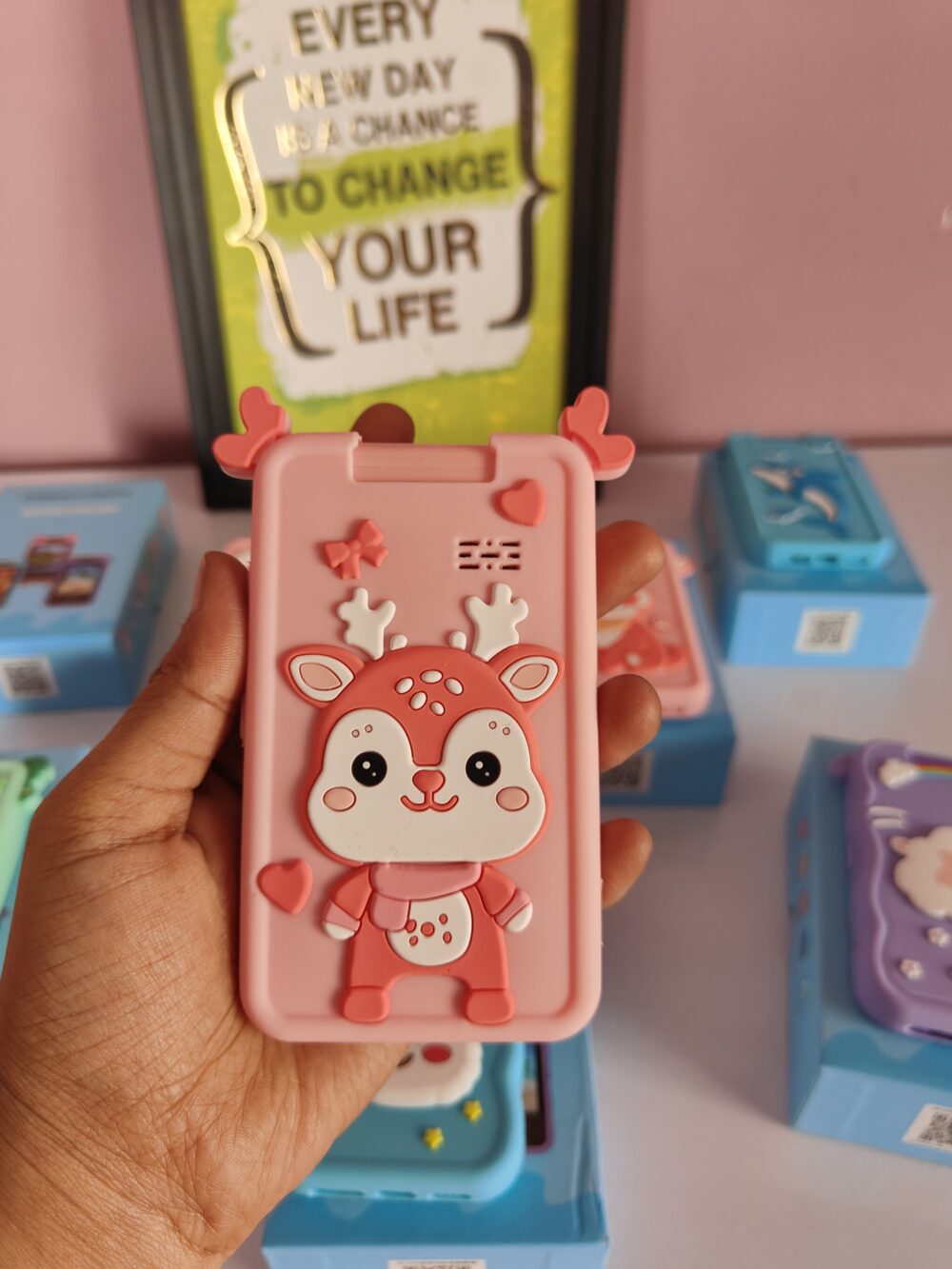 This toy phone for kids has a touch screen that allows kids to experience real smartphone fun. There is no SIM card (no calling or texting), but the entertainment is endless.