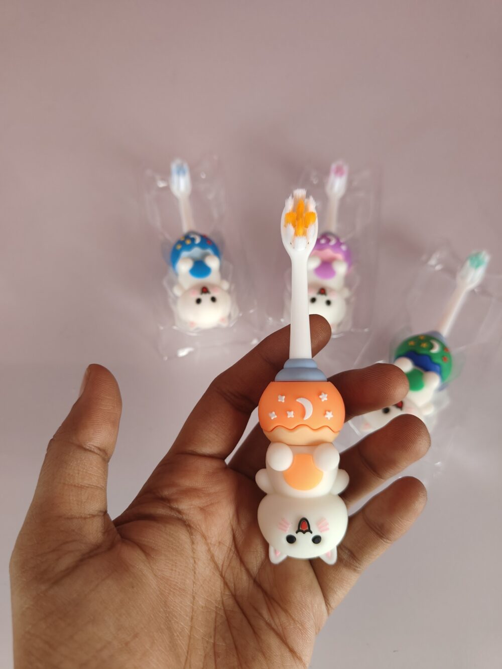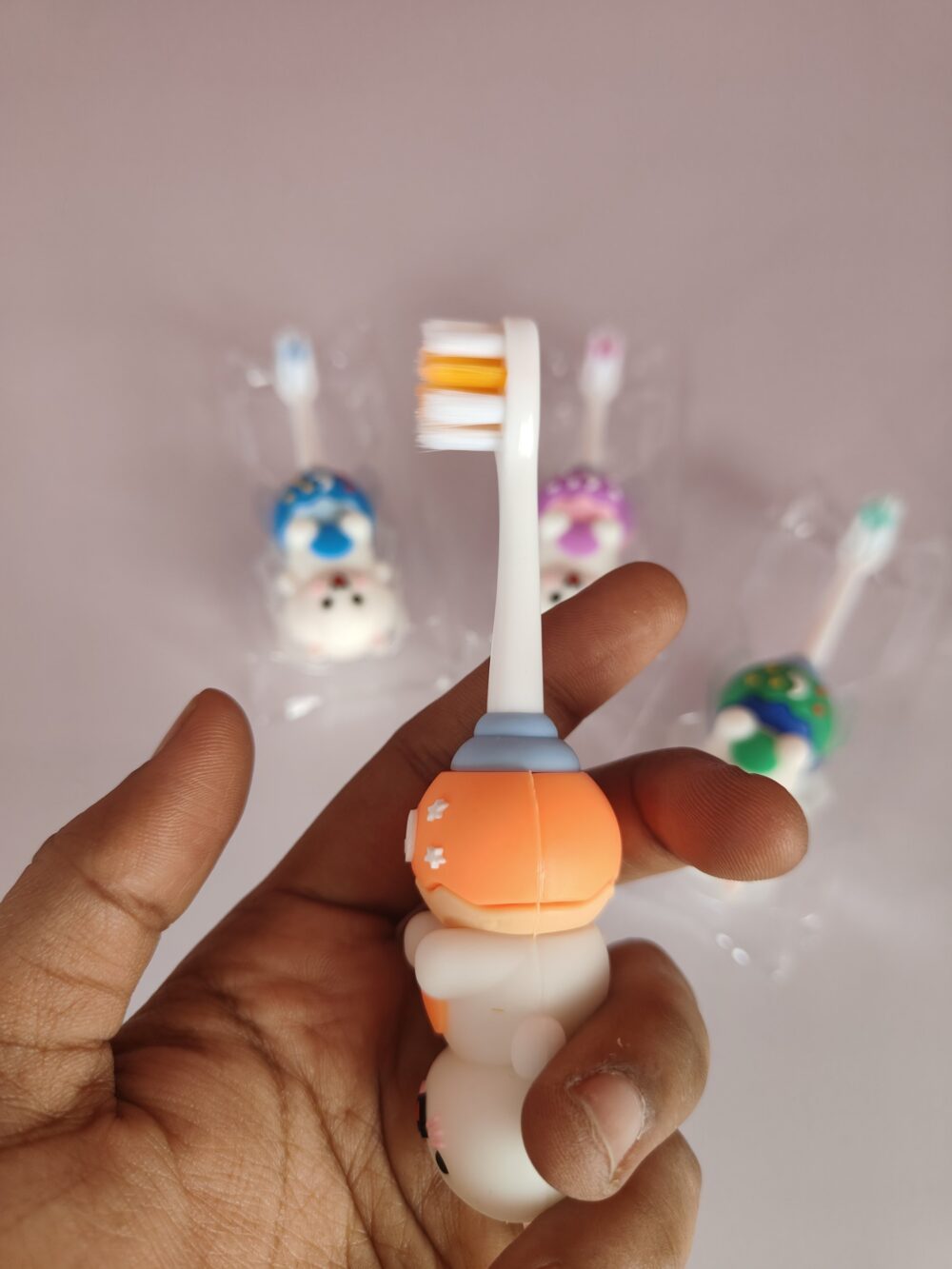 Kid’s toothbrushes with Super Nano Bristles are soft and smooth, and fight germs and bacteria, unlike regular toothbrushes. Provides the best-in-class action against germs and keeps the teeth stronger. The handle is made from food-grade silicone with attractive designs and shades that attract kids and make them keep their oral care activity in check.