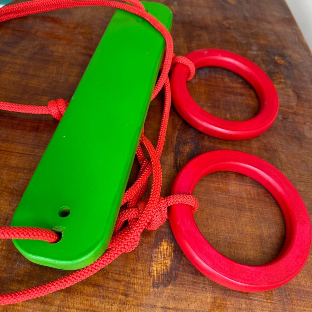 Kids Trapeze Swing Bar with Rings and Hanging Rope – FREE S-Hook