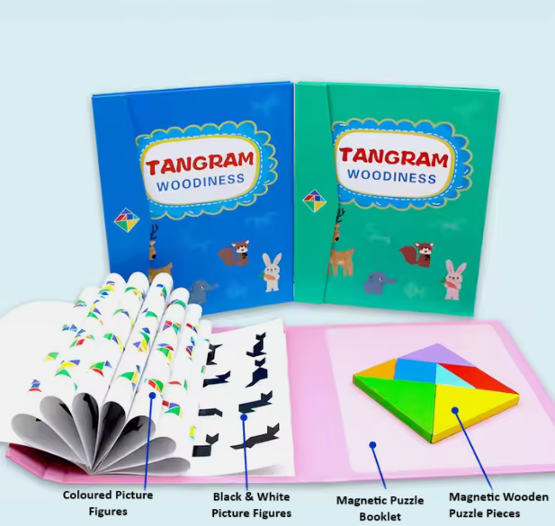 Magnetic Tangram Book with 100 patterns and tangram pieces