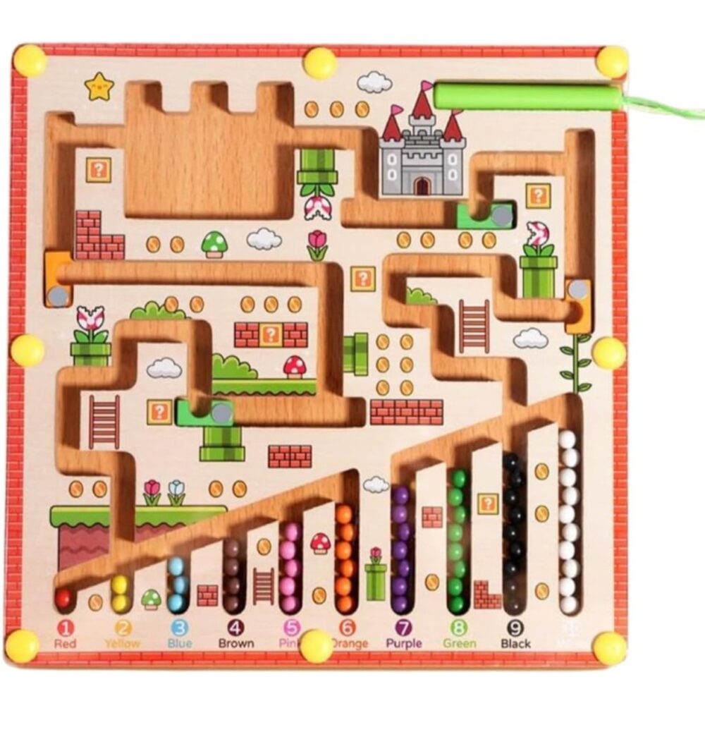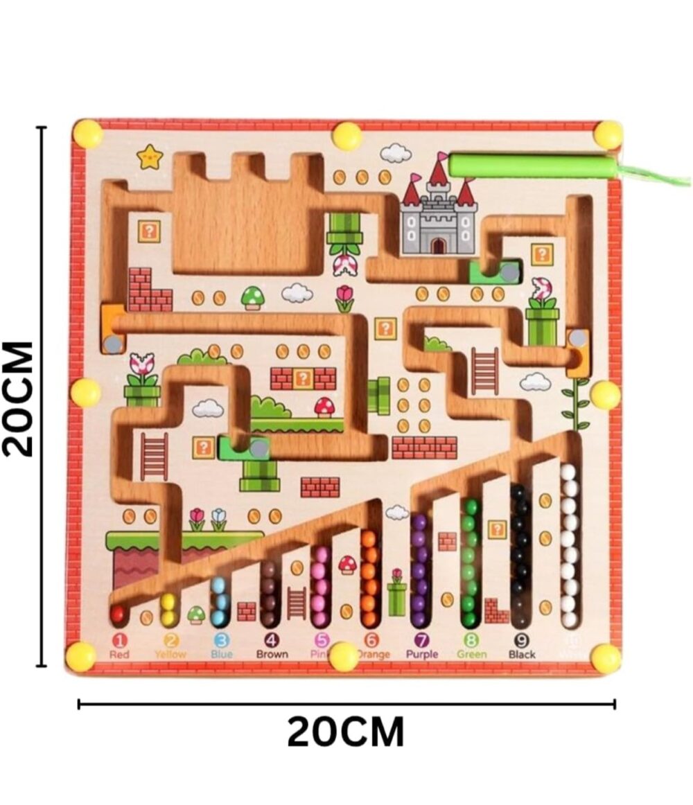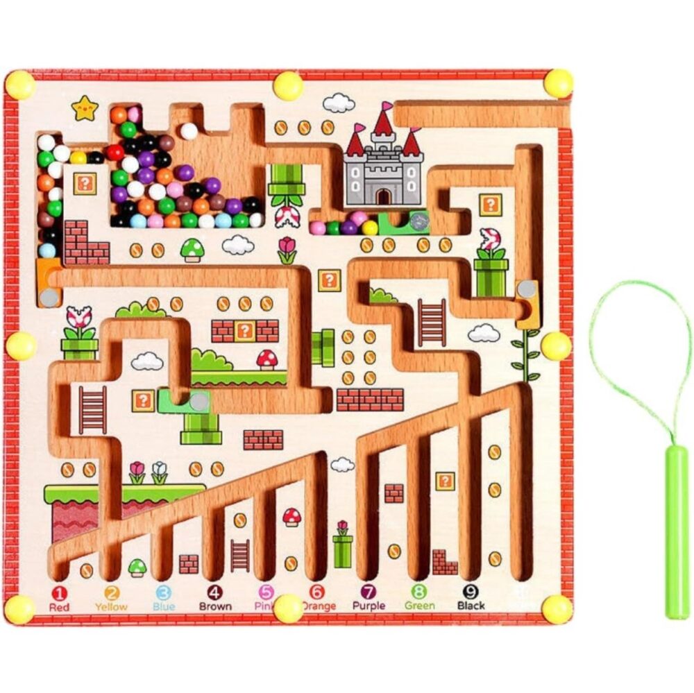- Montessori-inspired maze board for focus & hand–eye coordinationMagnetic stylus included to guide the beads through the maze