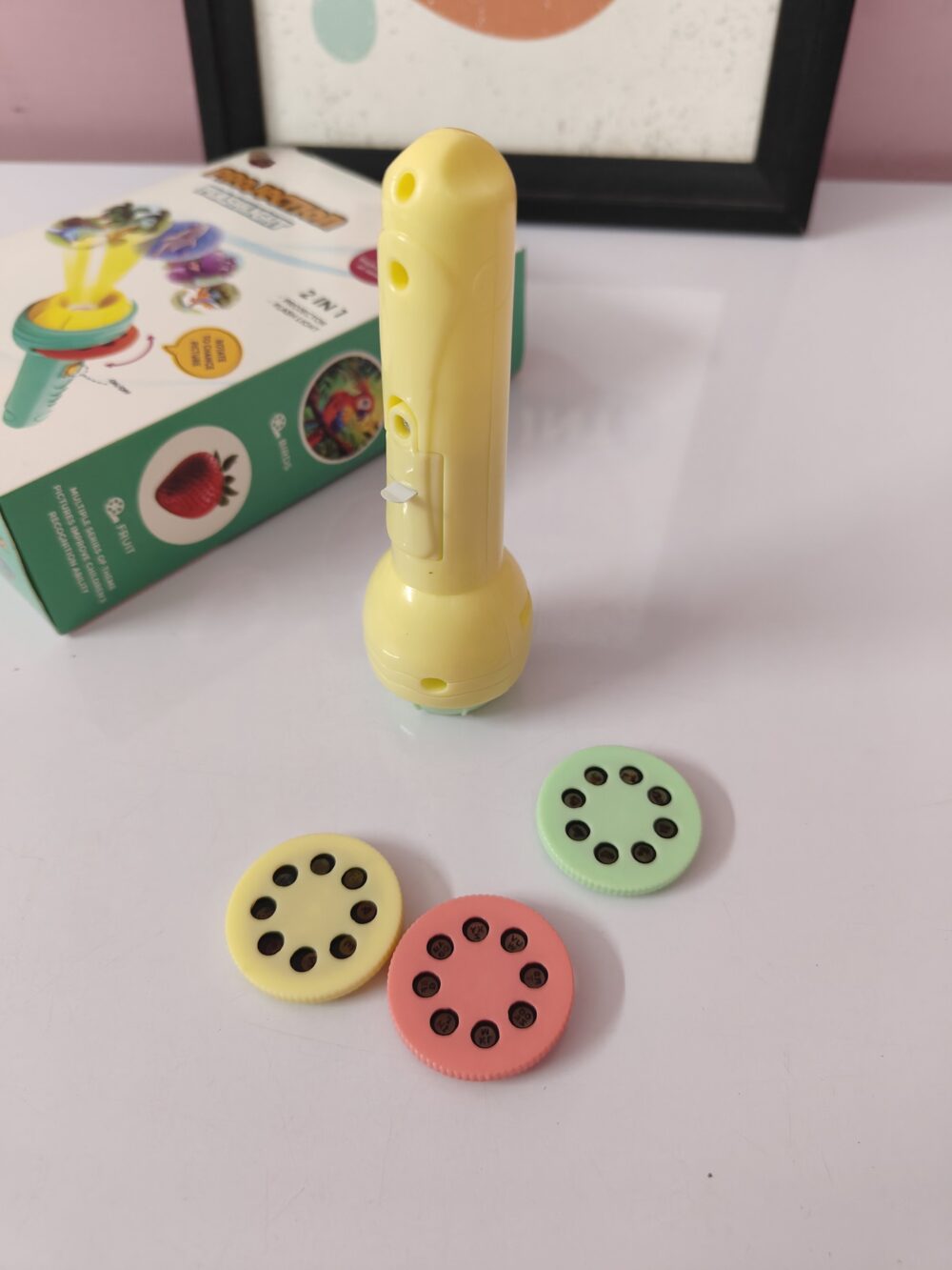 • Safe and high-quality materials: It is made of high-quality ABS environmentally friendly materials, and the smooth edges will not harm children’s small hands. Easy to use. The slide rail can be replaced by simply sliding the plastic cover. Then insert the selected disc and rotate or adjust the disc to observe the projected image. Light and convenient. Can be used as a flashlight to make your child feel safe at night.