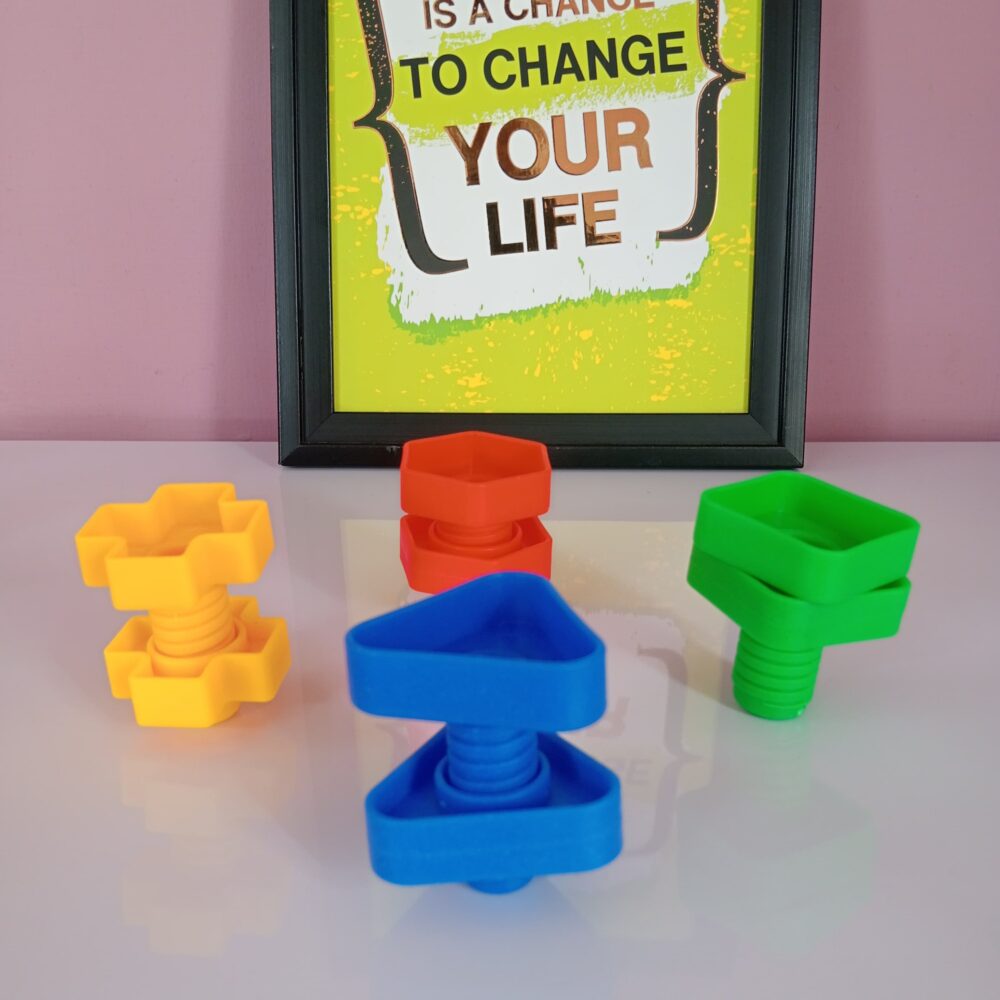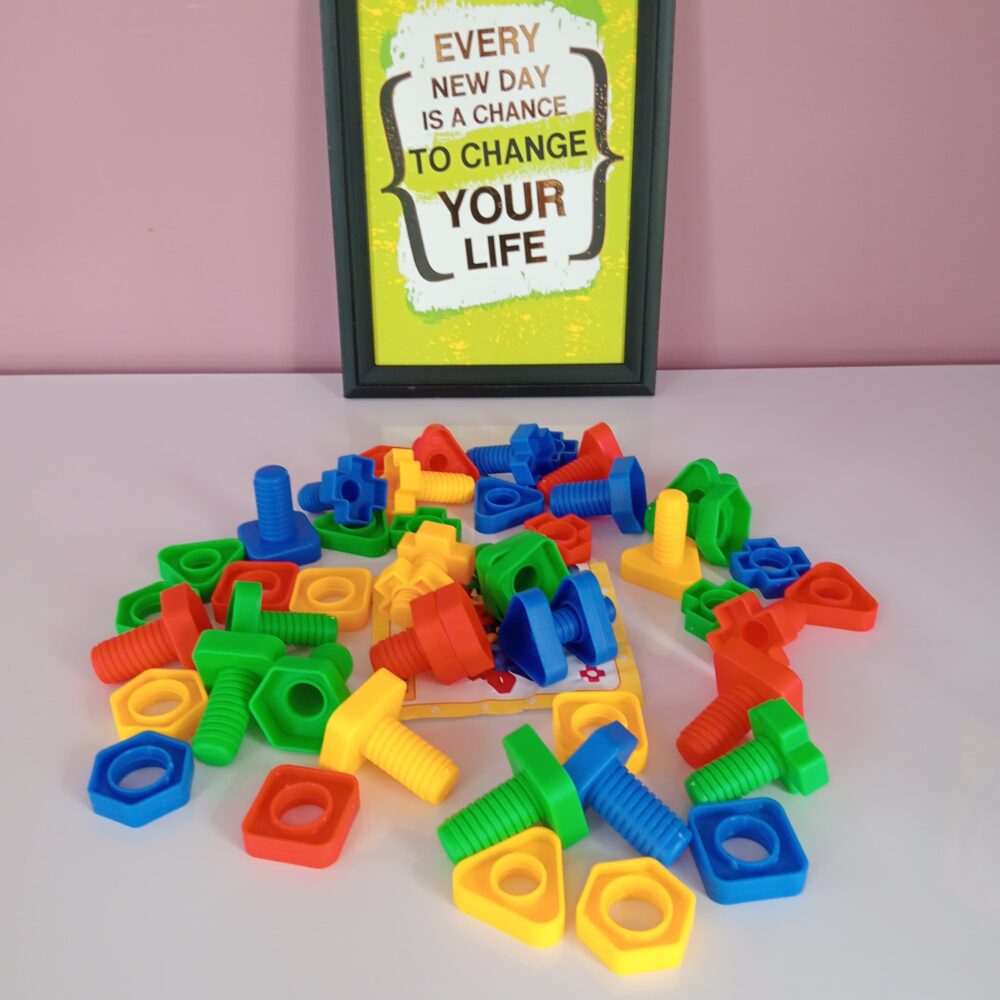 Screw and unscrew increase fine motor skills and hand eye coordination