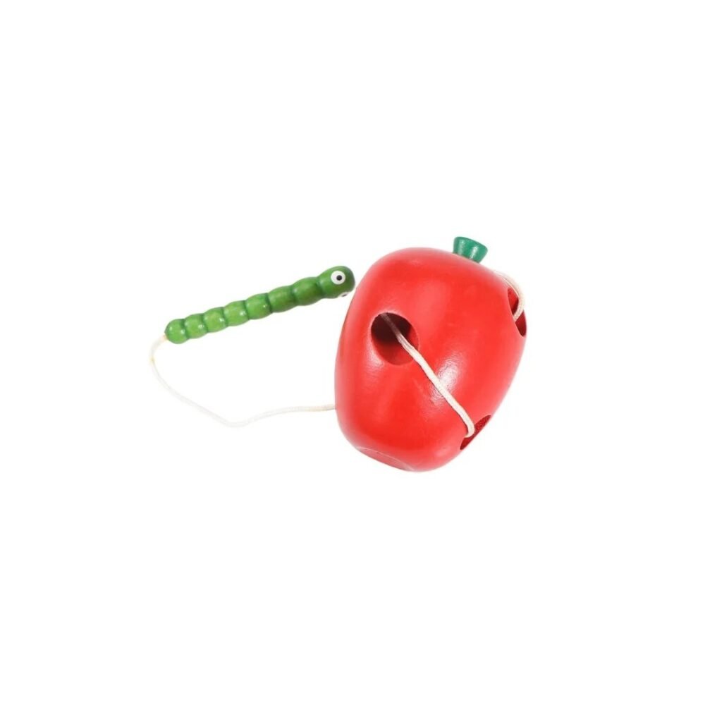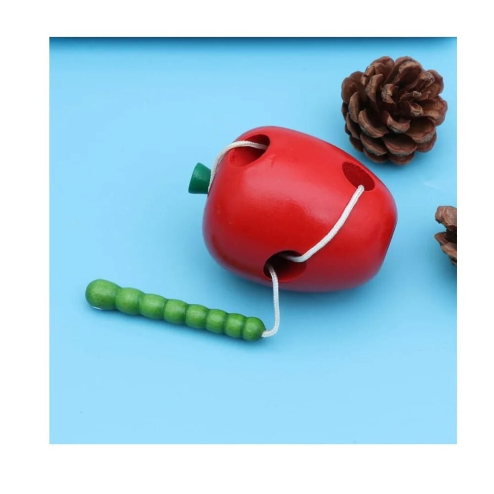 - Threading toy laces. Made of premium natural wood, very durable and safe.Wooden laces toy. The worm larva is attached to the wire and allows your child to thread it through all the holes.