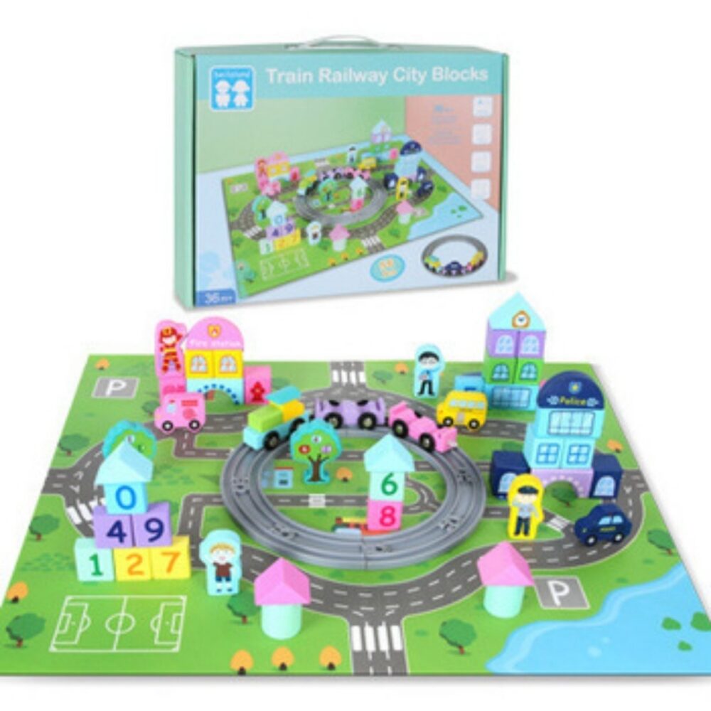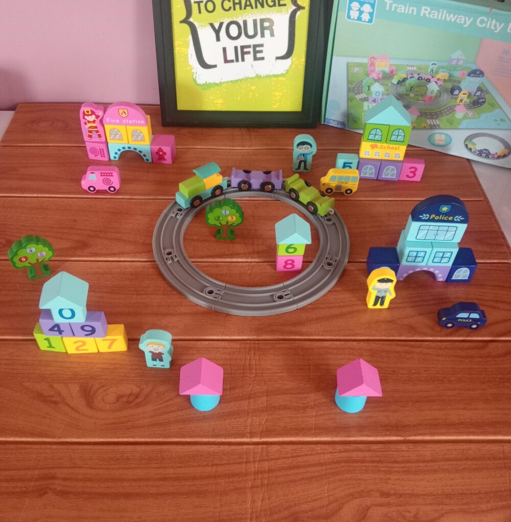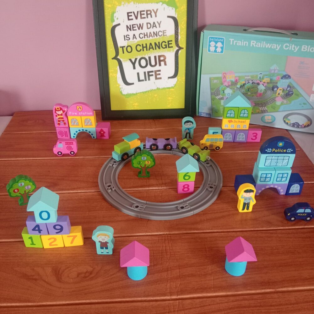 - Train Railway City Blocks – Fun and interactive city playset for kidsIncludes buildings, vehicles, trees, people & railway track