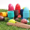 - Colorful Wooden Egg and Cup Set: Vibrant set of 12 wooden egg cups with matching wooden eggs in assorted bright and earthy colors.Perfect Size for Little Hands: Egg cups measure 6 cm in height with a 3.7 cm opening, and eggs measure 4.5 cm in height with a 3 cm diameter.